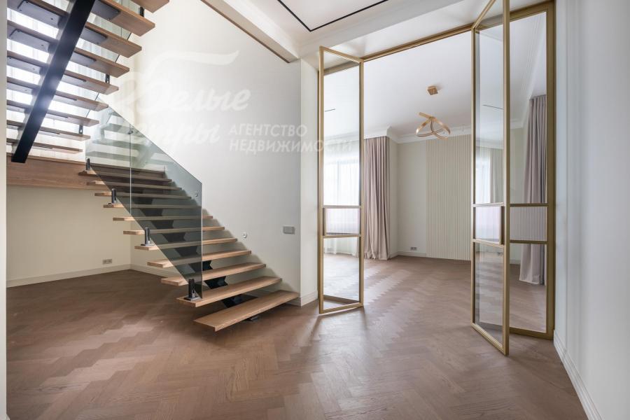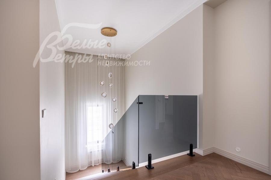 Описание внутренней отделки: Использованы качественные материалы надежных российских и зарубежных брендов. Внутренние стены оштукатурены. Высокие межкомнатные двери от фабрики Волховец -2,3м высотой. Установлена звукоизоляционная стеклянная перегородка-портал из коридора в гостиную. Напольное покрытие Quarz Parquet с натуральным шпоном дуба 6мм. Установлена сантехника Splendy. Свет, розетки, выключатели - Maytoni. Подоконники кварц агломерат. Установлена комфортная лестница с подсветкой, на стальном каркасе, огорожена закаленным затемненным стеклом, ступени из массива дуба 32см*15 см. На потолке декоративные панели и лепнина из дюрополимера.