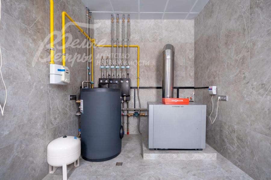 Инженерное обеспечение: немецкий газовый котел ViessmannVitogas 100-F, бойлер Viessmann на 300л. Установлены кондиционеры марки Haier в каждом помещении. Установлены биметаллические радиаторы отопления Tubog. На террасе выведено освещение, розетки. Установлена электрика автоматы АВВ. Установлен мастер-выключатель