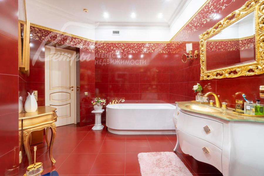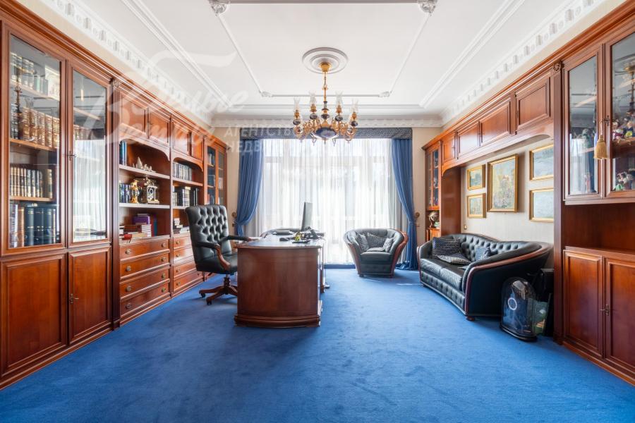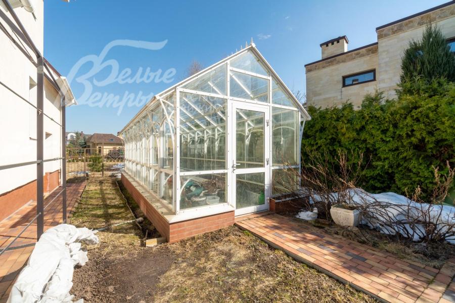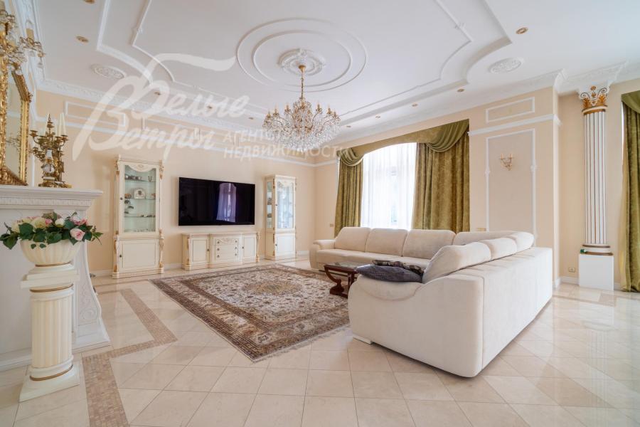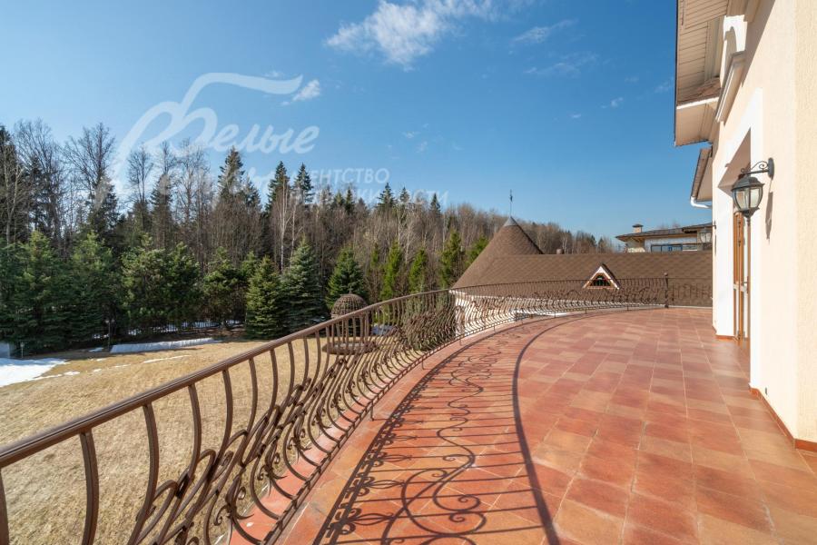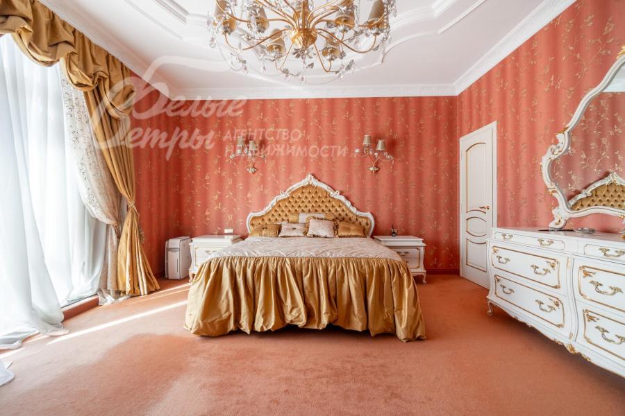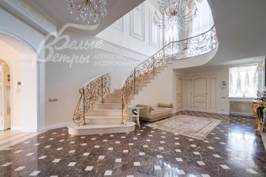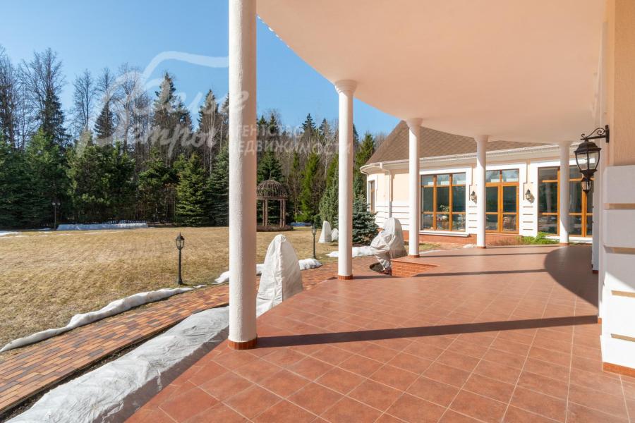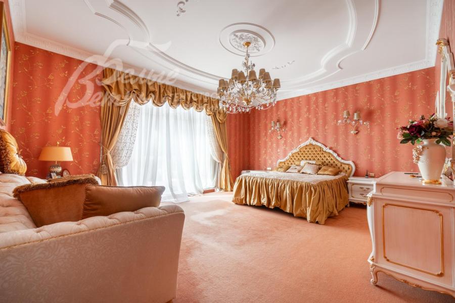 Кирпичный меблированный дом‑усадьба с выразительными чертами классической архитектуры, впечатляющий внутренней отделкой, огромным участком с парковым ландшафтом, собственным прудом и прилесной территорией. В доме — просторная спа-зона с большим бассейном, джакузи, купелью, парной, инфракрасной сауной, хамамом, есть соляная комната. В планировке – более 125 м² террас и балконов. В отделке – несколько видов мрамора, фрески, лепнина, молдинги, пилястры. Интерьер дополнен итальянской мебелью. На участке построены отдельный дом для персонала и застеклённая беседка, стоящая на пруду. Ландшафт украшают мостик, ротонда, зоны для прогулок. На территории высажены туи, сосны, ели, цветники, сады. Участок находится в строго охраняемом коттеджном посёлке с центральными коммуникациями рядом с платной дорогой.