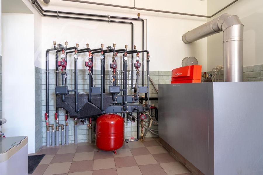 Инженерное обеспечение: в доме система отопления с тёплыми полами: они — повсеместно на первом этаже, а на втором этаже — в санузлах, дополнительно установлено небольшое количество радиаторов. В котельной — котел Viessmann на 100 кВт и бойлер на 300 л Vitocell 100 для горячего водоснабжения. Установлена станция водоочистки. В спальнях находятся кондиционеры Mitsubishi (3 шт), в бассейне — приточно-вытяжная вентиляция